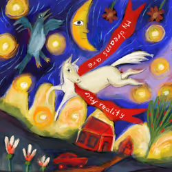 Marti creates joyful visual pathways between the realms making collectors everywhere happy and hopeful.