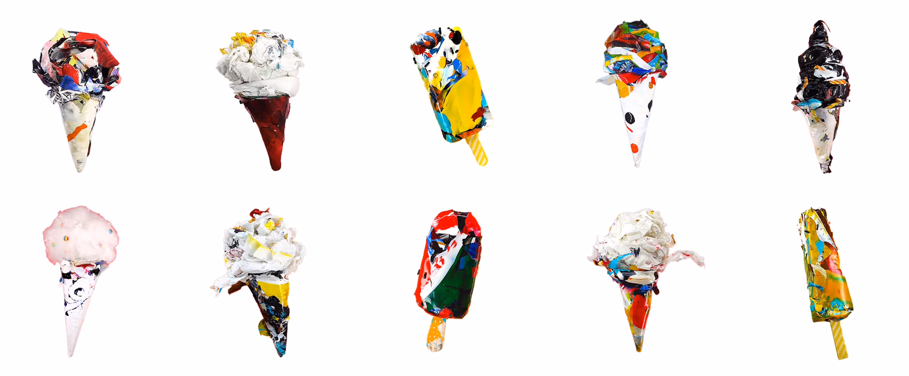 In the process of creating art, a surplus of residual materials tends to accumulate—paint chips, paper clippings, drippings, and more. Over an extended period, I collect these remnants and meticulously shape them into diverse forms, documenting the transformation through stop-motion photography. This becomes a tangible representation of the interconnected essence of time and memory. For me, this takes the form of an everlasting ice cream cone that will exist forever on-chain: perpetually spinning, never melting.