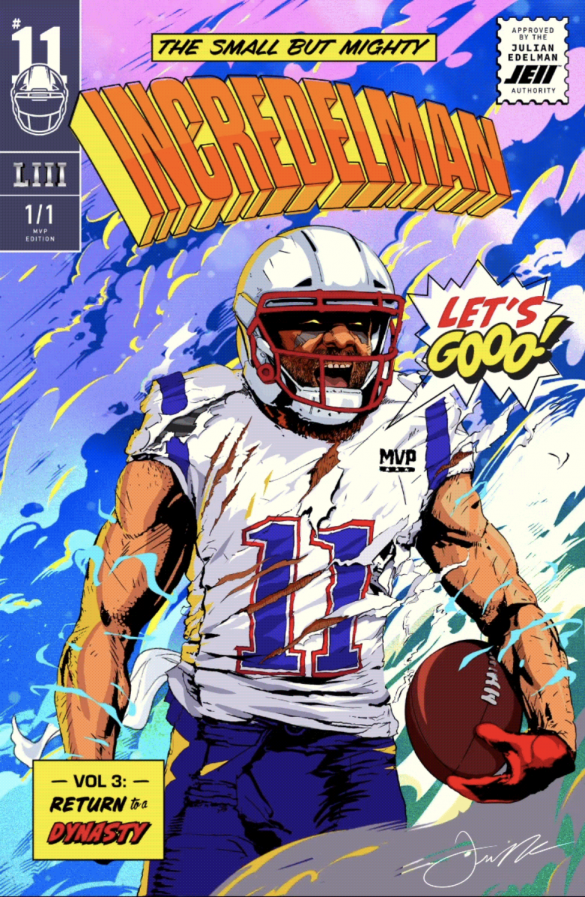 The Incredelman NFT Comic Collection combines Julian Edelman’s amazing championship moments with nostalgic comic book action. 10% of proceeds from the 1/1 Yalla Edition will benefit Maccabi USA, a non-profit using sports as a force for Jewish pride, connection, and community.