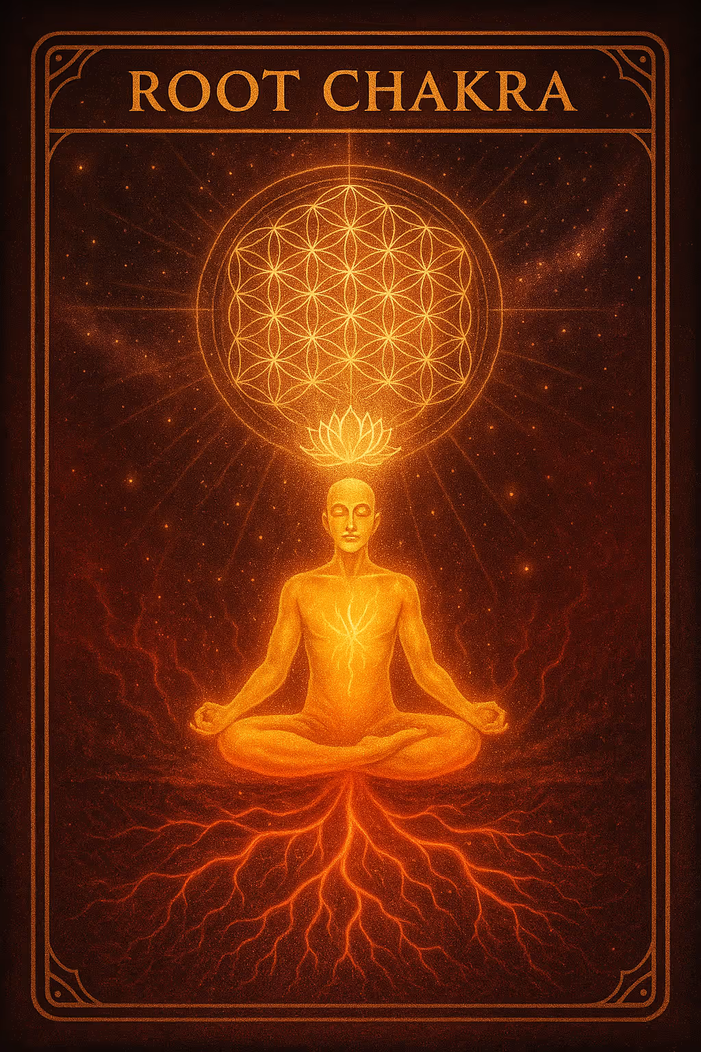 • Keywords Security · Grounding · Survival • Major Meaning Anchors the soul in the material world; establishes safety so growth can rise. • Strengths Stability, self‑confidence, financial pragmatism, endurance. • Weaknesses Fear of loss, over‑attachment to comfort, disconnection from body. • Cosmic Number 1 Initiation; the seed of all manifestation. • Guidance Practice barefoot grounding; affirm “I am safe & supported.” • Mantra “I stand rooted in divine earth.” • Visual Notes Crimson–gold roots, meditant figure, glowing root‑chakra symbol, sacred geometry rings