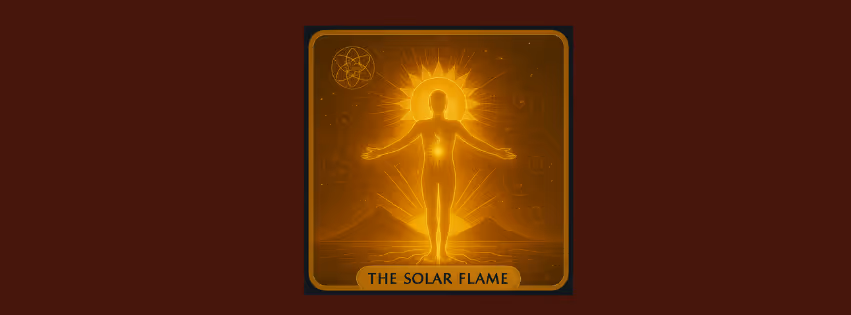 • Keywords Willpower · Confidence · Action • Major Meaning Ignites inner fire to transform vision into tangible results. • Strengths Decisiveness, leadership, purposeful drive. • Weaknesses Ego dominance, fear of failure, comparison fatigue. • Cosmic Number 3 Creative momentum; triadic synthesis. • Guidance Set one bold goal and act today; use breath‑of‑fire pranayama. • Mantra “My inner sun fuels success.” • Visual Notes Radiant yellow flames at navel, sunburst, open‑armed figure, gold geometry.