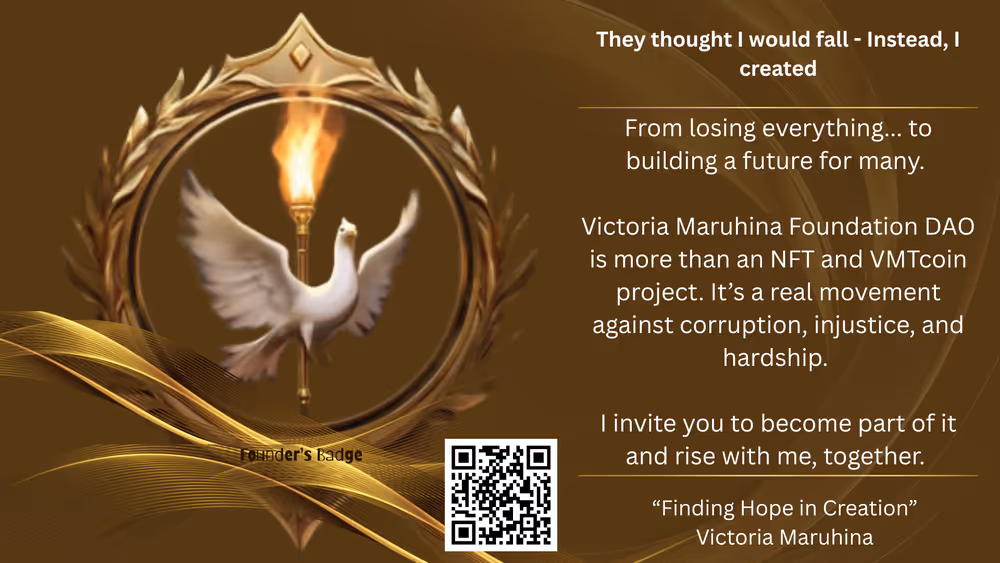 Today, I’m launching a global NFT and the Victoria Maruhina Token ( VMTcoin ) campaign to fund the VM Foundation DAO ( VMSC as a part of it ) — a powerful movement committed to human rights, anti-corruption, anti-bullying advocacy, animal protection, sustainable growth and to re-scale production of handcrafted products.