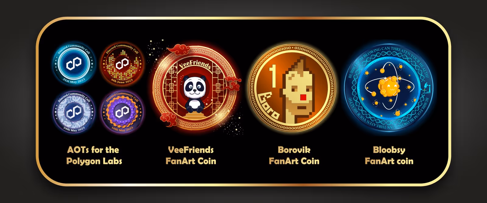 Coin Master’s journey in the NFT and Web3 space is marked by his incredible fanart creations. He has crafted iconic AOTs for THE Polygon Labs, designed a beloved fanart coin for the VEEfriends community, and created an exclusive fan art coin for the famous Web3 and NFT Crypto Punk, Borovik. Most recently, he has added the Bloobsy community to his impressive portfolio with a uniquely designed fan art coin.