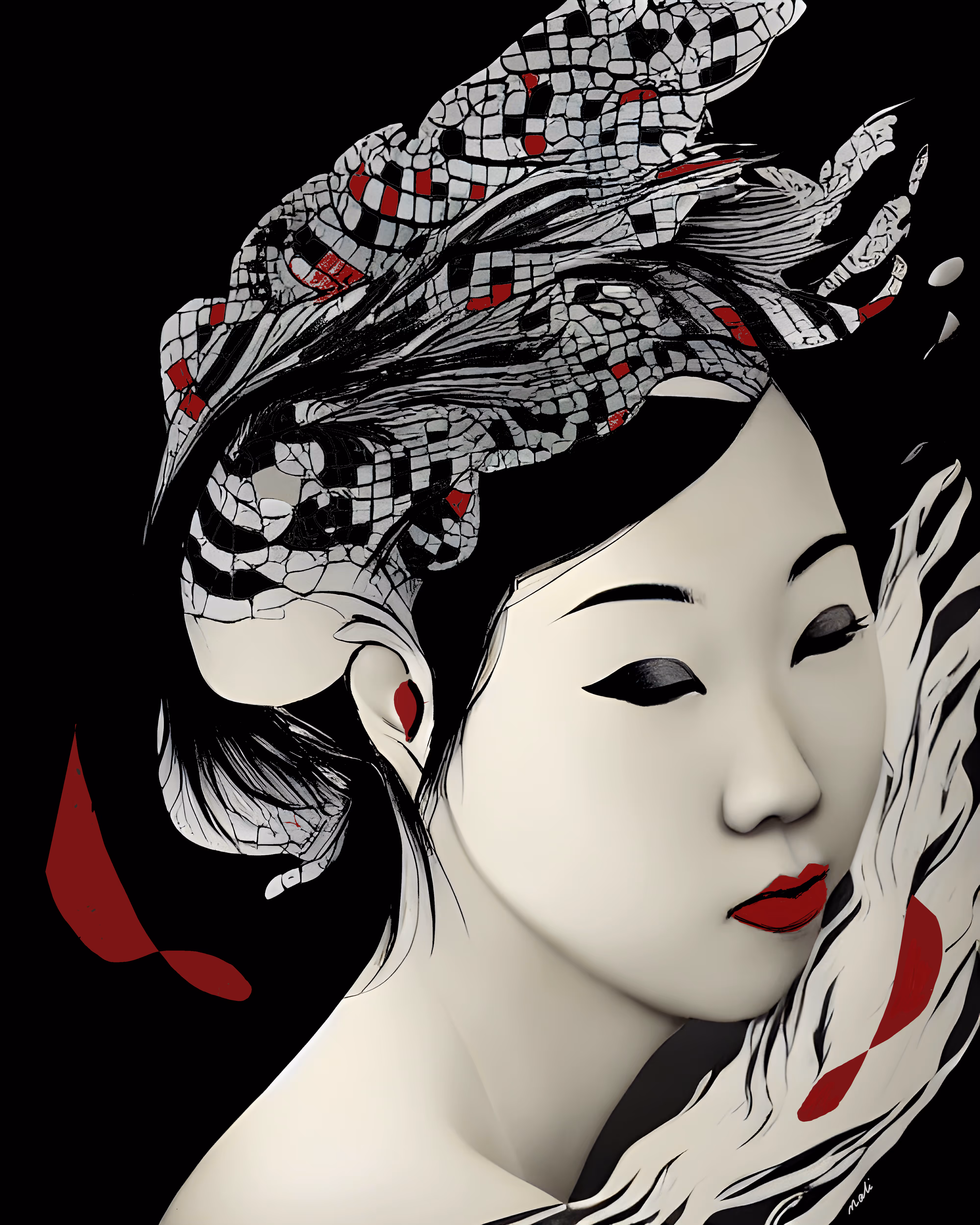 #aiart #AIartwork #darkart #darkartnft #dark #openseanft #nftartist #nftart #Asian #malishirazian #AIart #redandblack #openseacommunity
