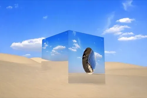 Floating cube in the desert