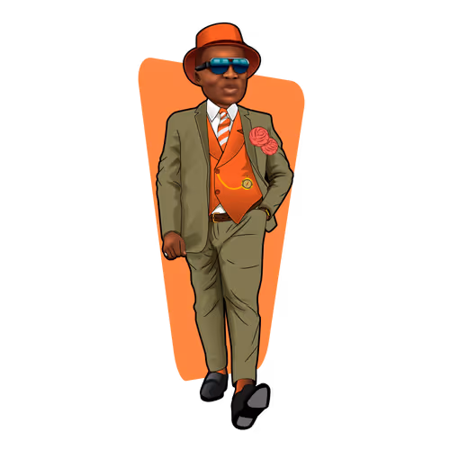 Les Sapeurs - Dark Green Suit with Orange Waistcoat and Hat. Art by Zonas, Music by Tinnvibez