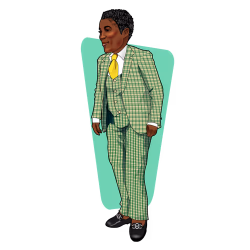Les Sapeurs - Green Check Suit with Yellow Tie. Art by Zonas, Music by Raphbeat