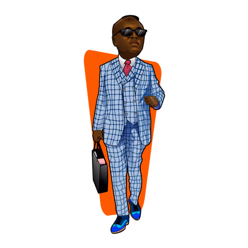 Les Sapeurs - Blue check Suit with Red Tie. Art by Zonas, Music by Tinnvibez