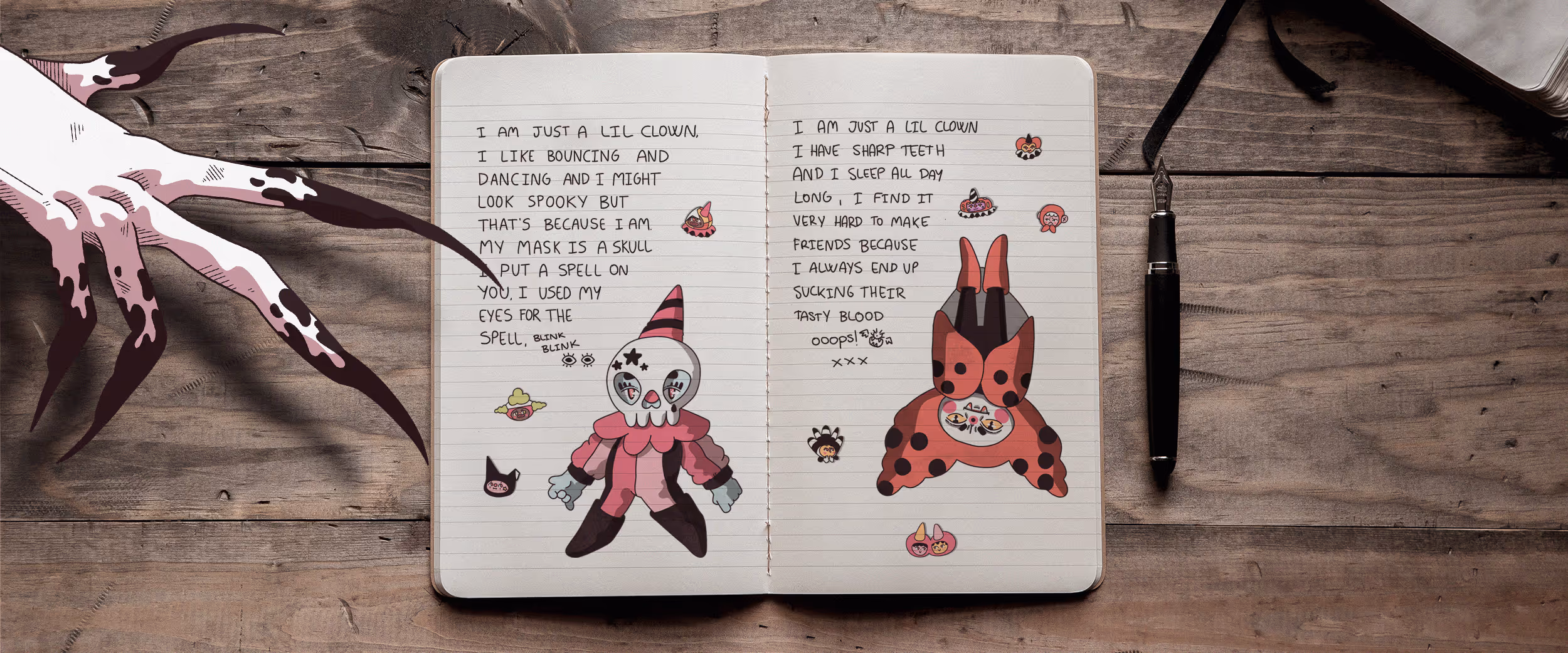 lil clowns love writing down their feelings... they are introspective creatures that enjoy sharing their inner thoughts and dreams