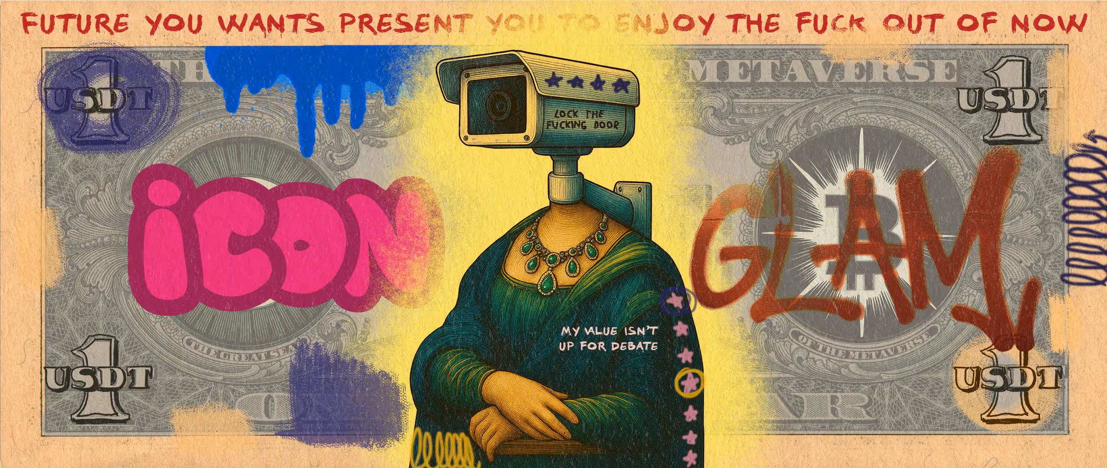 Each banknote starts from the same foundation, then pulls in different references: crypto culture, luxury, war, religion, dopamine addictions, fast food, political theatre and the iconic figures who helped redefine what “value” can be.