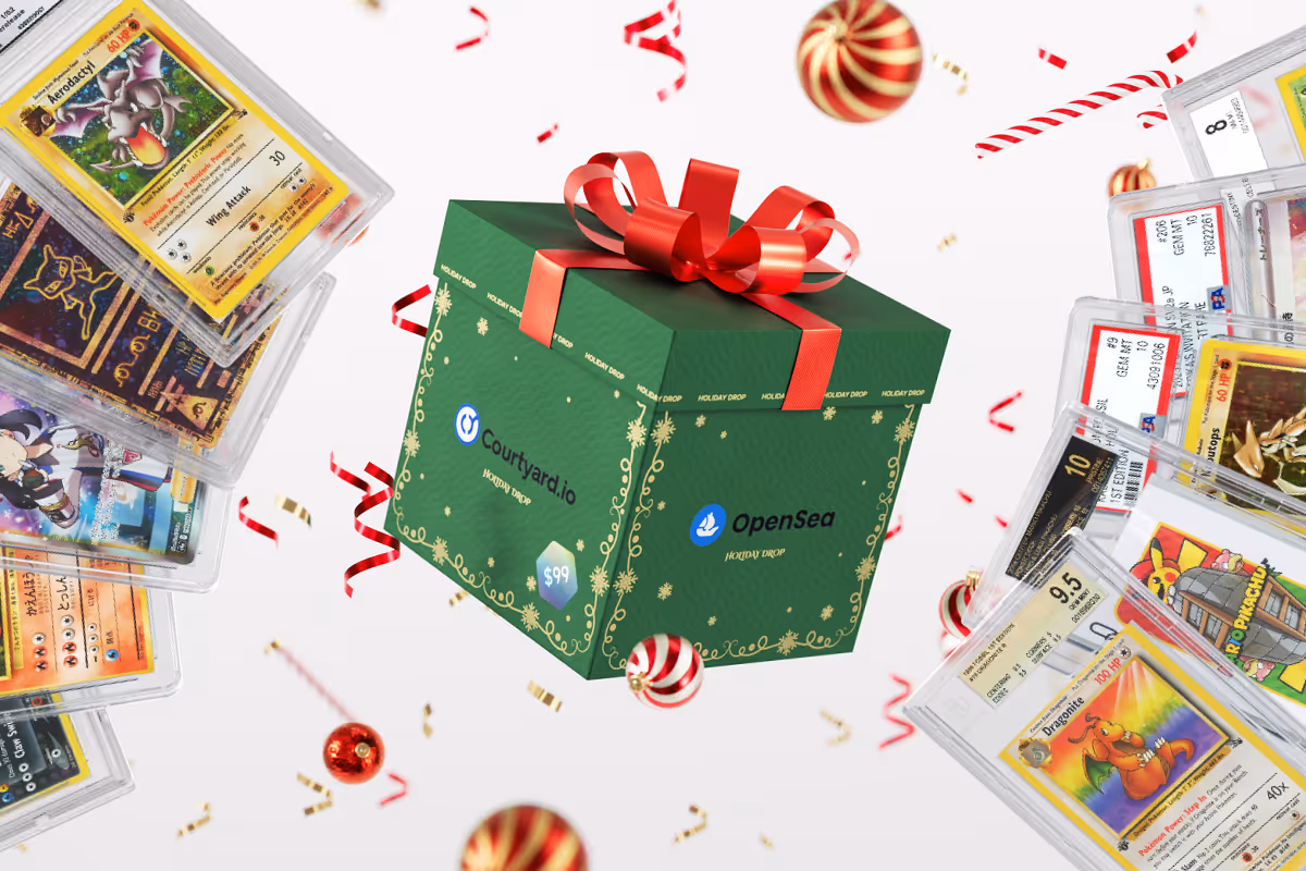 ⦿ 1 holiday box = 1 graded Pokémon card vaulted at Brink's ⦿ Trade your box on Courtyard.io and OpenSea, or send directly to a friend ⦿ Unwrap to reveal your card on December 25th ⦿ Any boxes not opened will eventually auto-reveal ⦿ Redeem from the vault or choose to hodl and trade ⦿ Onchain to prove 100% fairness and randomness in distribution