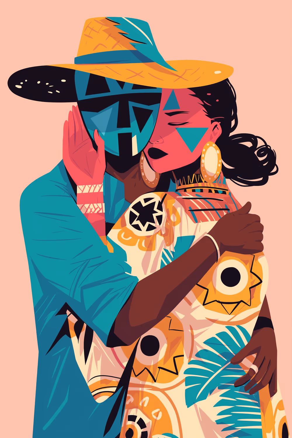 Guardian spirits, depicted as luminous figures, watch over and protect the individuals within the artworks, underscoring the theme of spiritual protection and ever-present guidance. The celebration of unity between body, mind, and spirit is depicted through intertwining forms and vibrant energy, symbolizing harmony and balance.