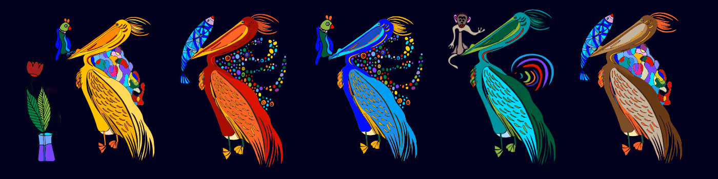 Whimsical Wings: The Colorful Carnival of Majestic Pelicans