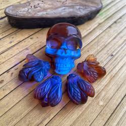 Carved Amber Skull Blue UV