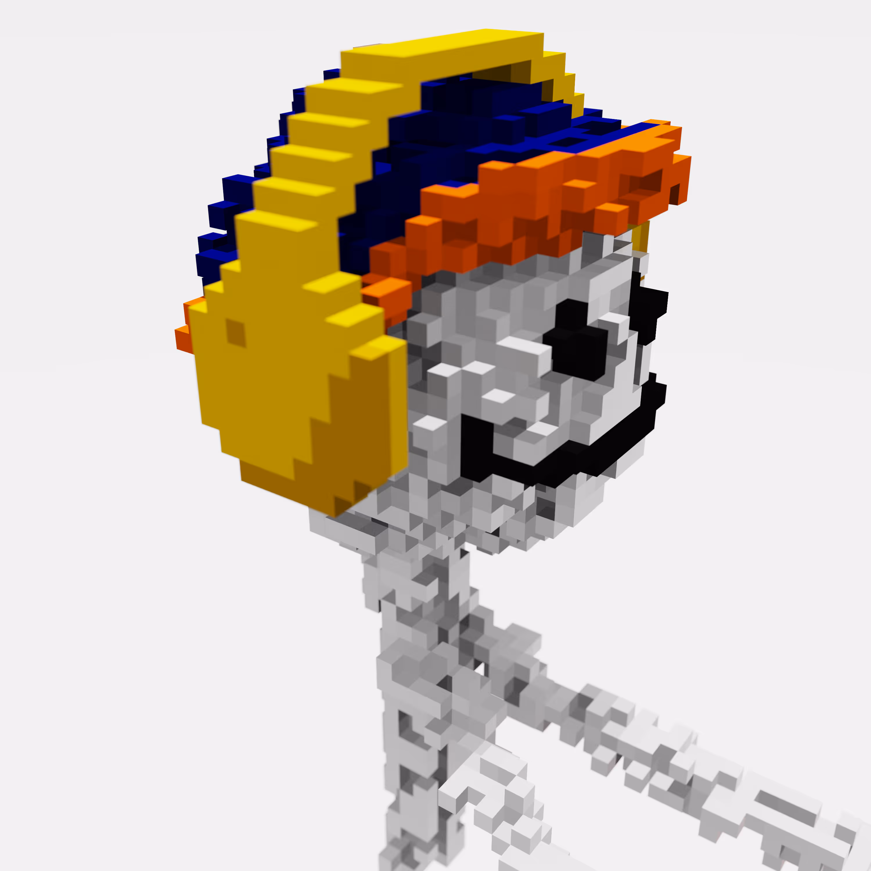 Voxel mfers by D.C.O.T. block by block in a 3k 2d render on a white background, designed and generated manually, no AI used