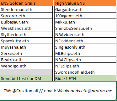 DM me on twitter @crazitomali or email weakhands.eth@proton.me if you want to bargain for an ENS domain.