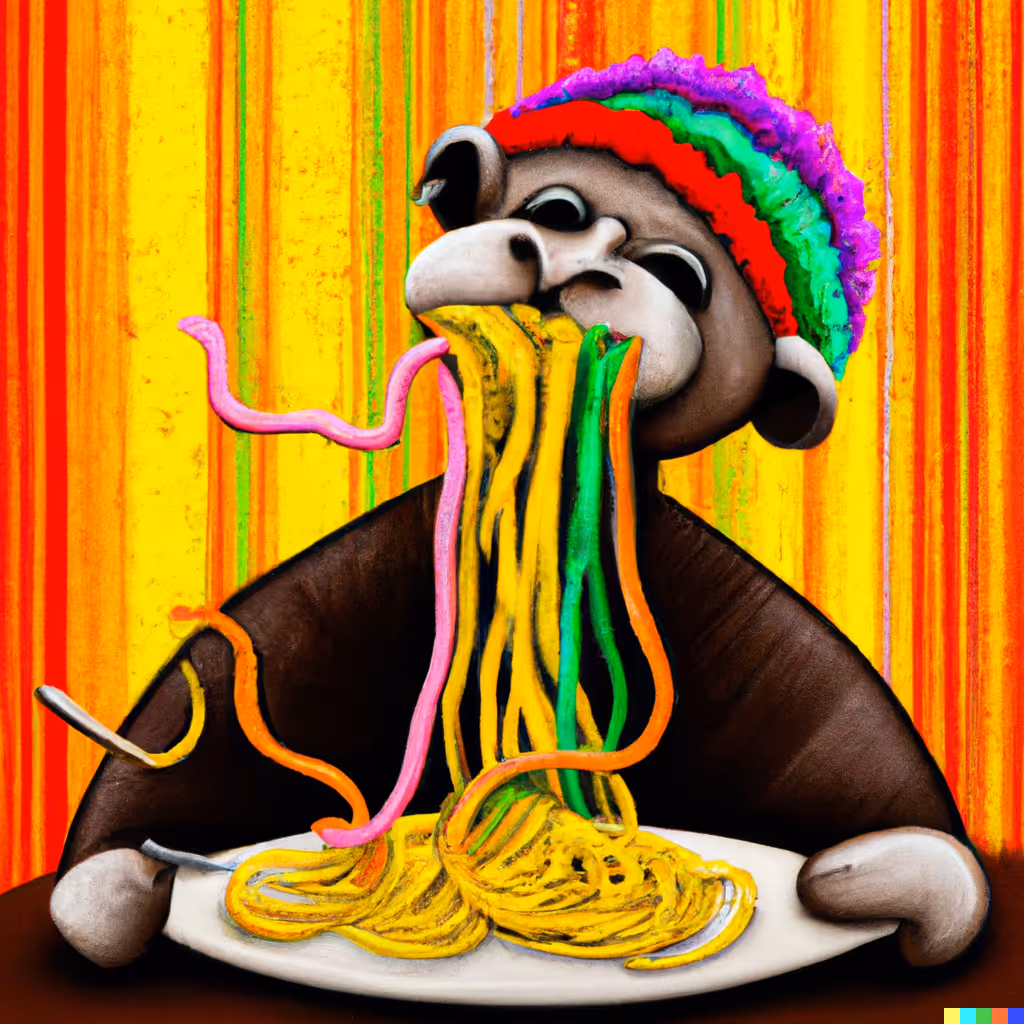 Monkey eating spaghetti