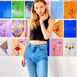 I'm Jacquetta a Digital Line Drawing Artist who creates simplified, abstract, colourful line drawings of the human face. #digitalartist #nft