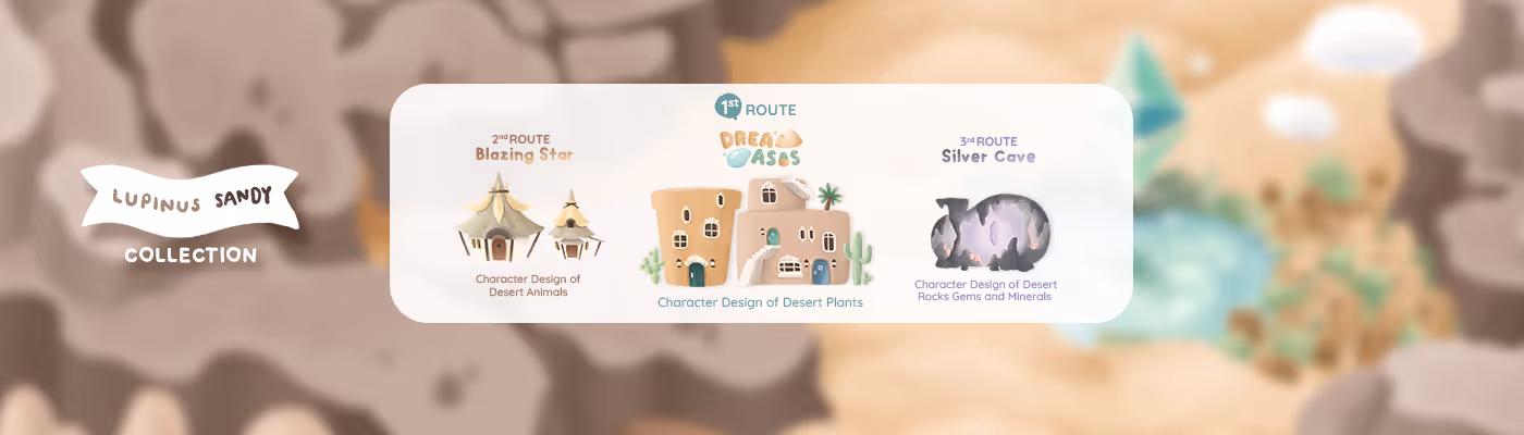 Illustrator in Thailand | "Lupinus Sandy" Collection the 1st route "Dream Oasis" 2nd route "Blazing Star" and 3rd route "Silver Cave"