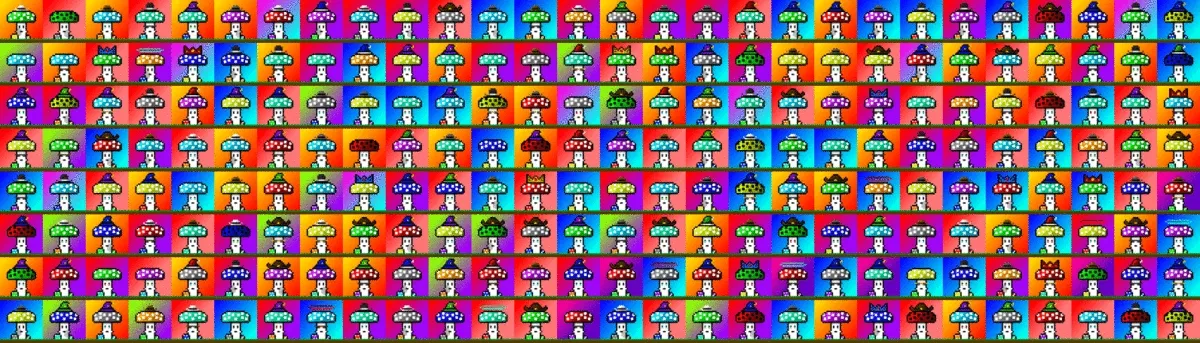 The Meta Mushrooms, accessories and everything about them are digitally drawn then algorithmically generated with rarities!