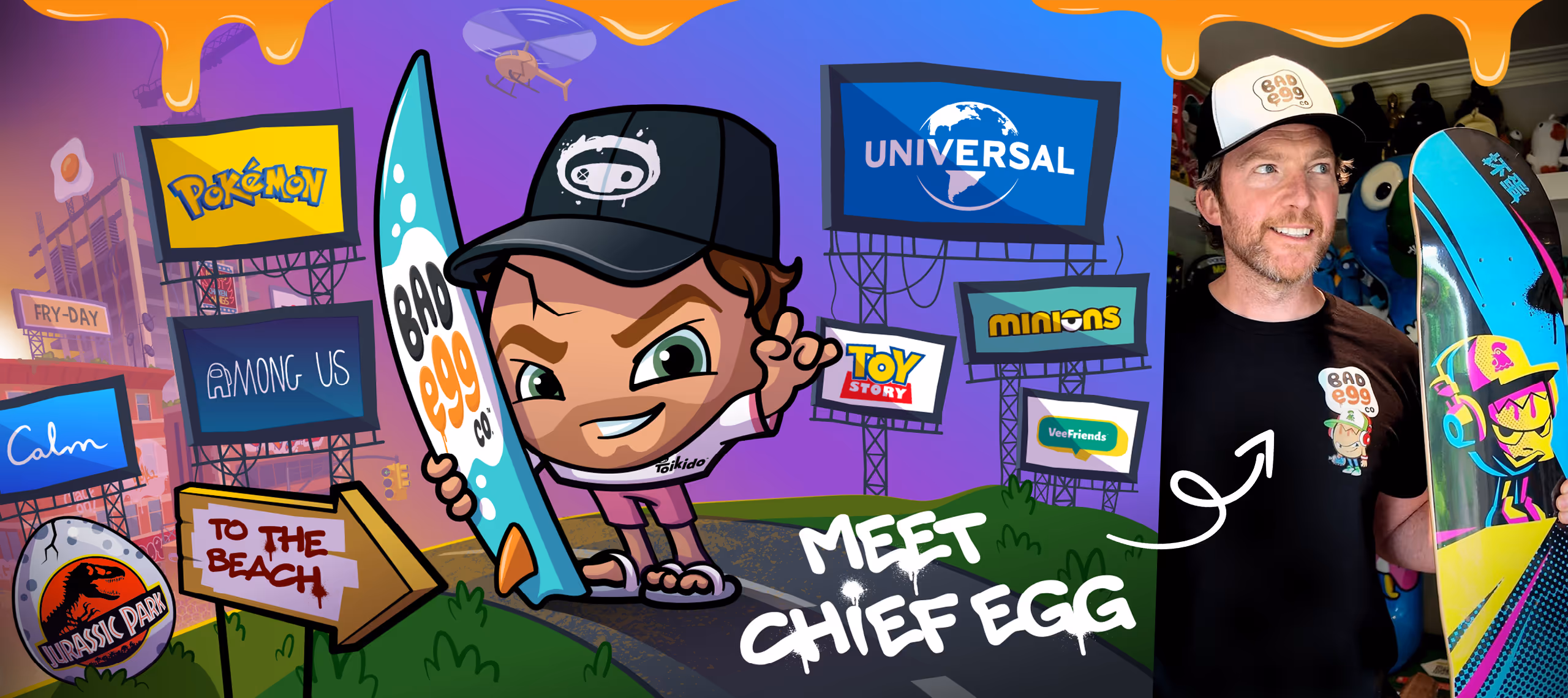 Rooted in the vibrant streets of New Yolk City’s Sunnyside borough, Bad Egg Co. is a rebellious brand that celebrates skate culture and embraces the spirit of adventure and camaraderie. Inspired by the colourful characters and daring escapades of Sunnyside, Bad Egg Co. brings together a diverse cast of characters, each dropping in with their own unique personality and style.