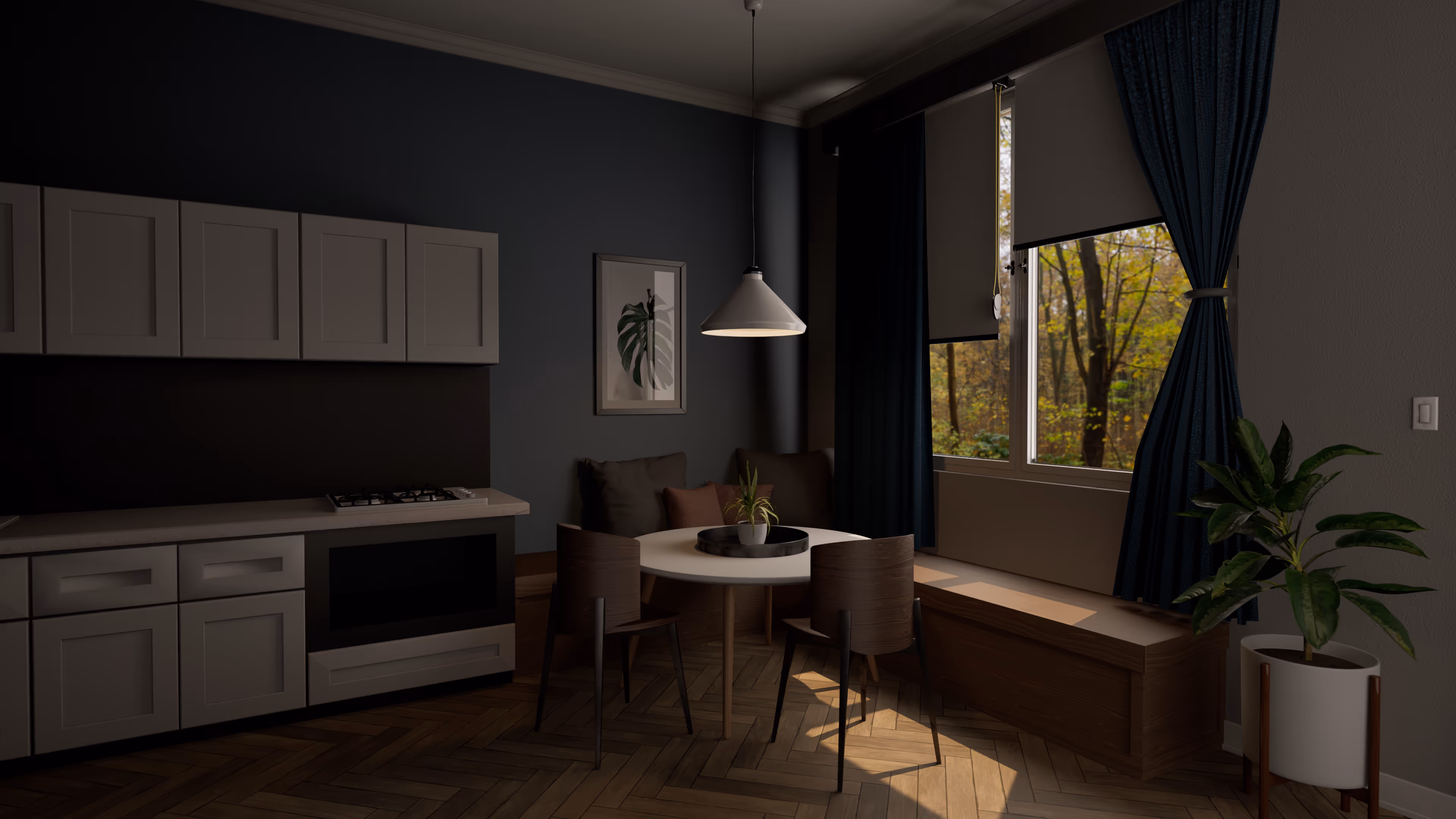 "Create Interior N2: Lighting Animation" explores the intricate relationship between light and shadow within a minimalist interior setting. Each animation captures the subtle nuances of lighting changes, demonstrating how different light sources and intensities can dramatically alter the perception and ambiance of a space. This collection offers a dynamic and immersive experience that elevates the perception of modern living spaces.