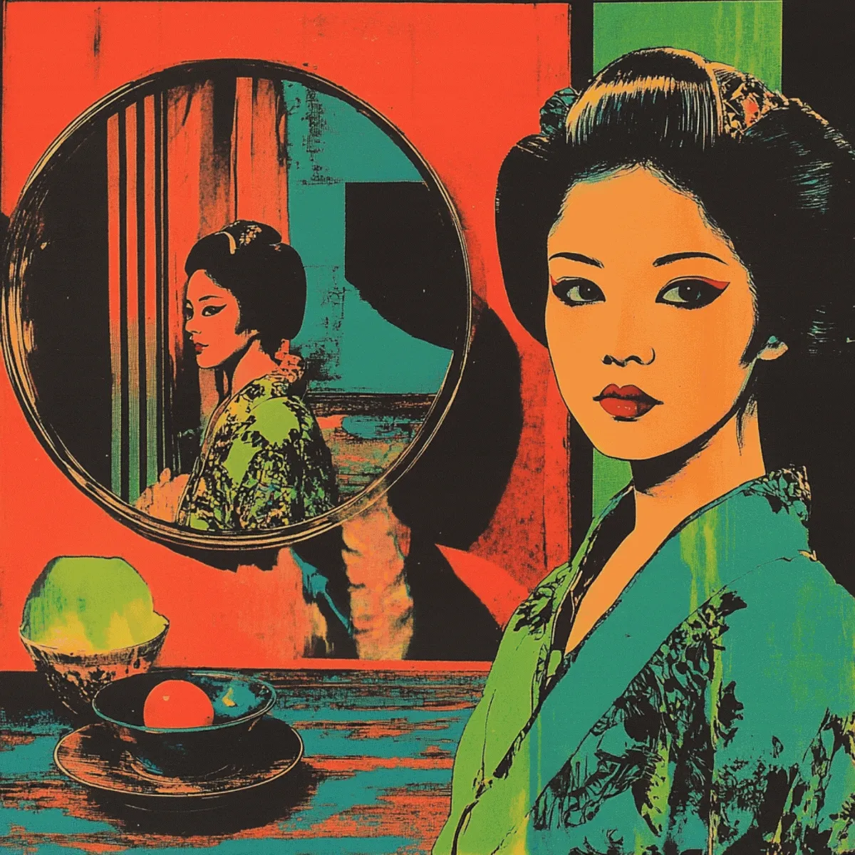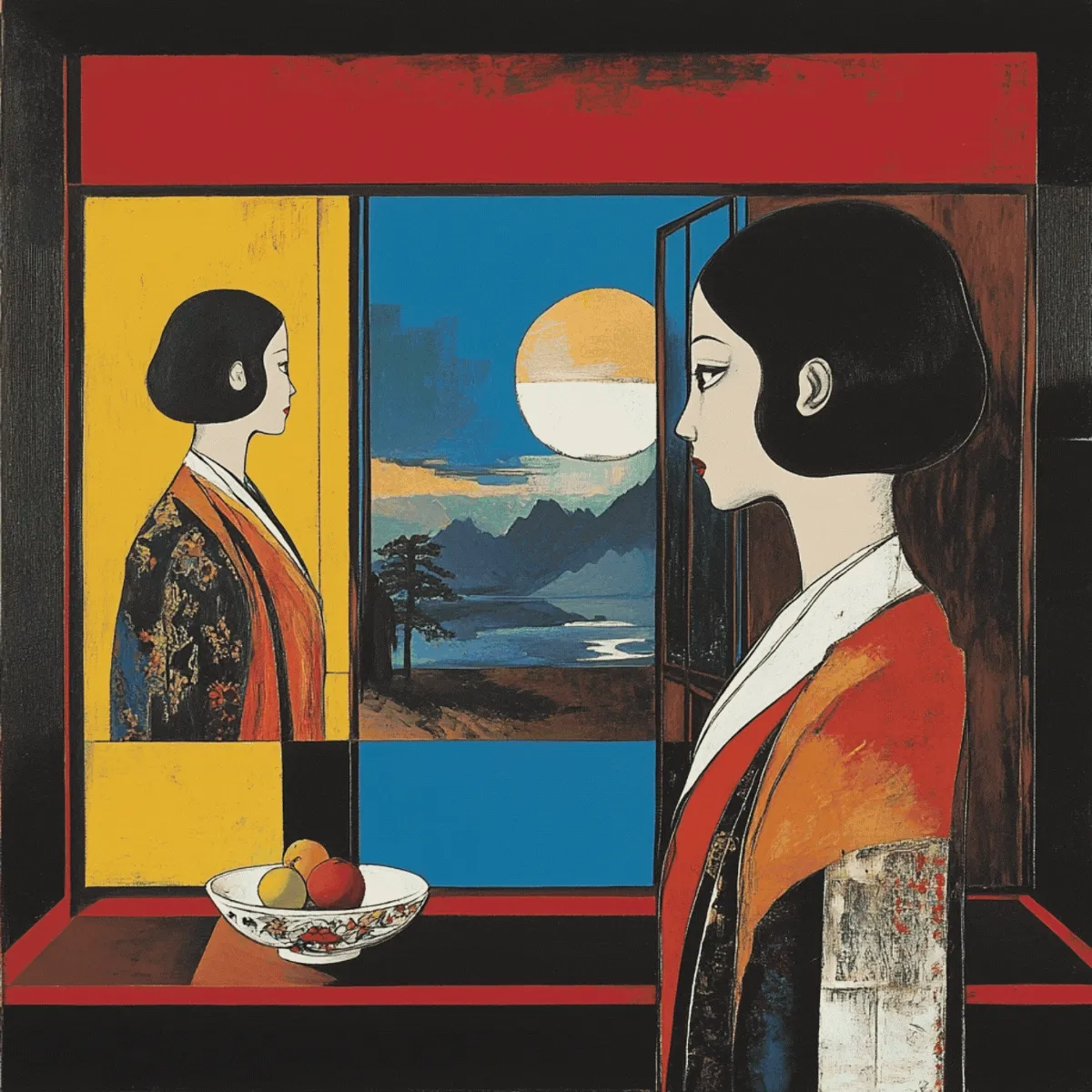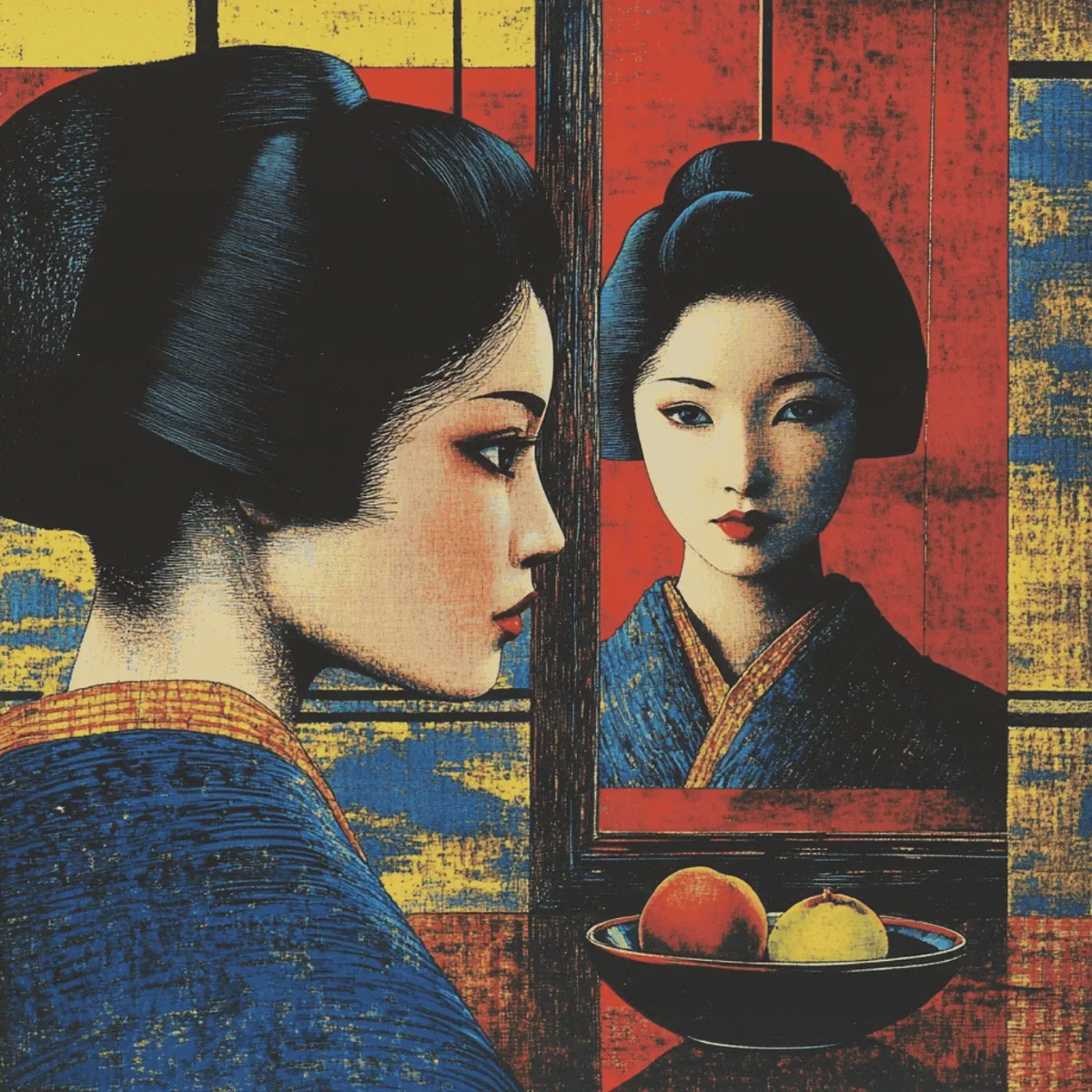 "Made ya look!" In "Double Takes," the latest collaboration between frequently sold-out Orangehare artists Yuki and Klara, nothing is quite as it seems. Across 54 unique one-of-one pieces, figures flicker between selves—mirrored but not identical, reflected but slightly askew. Is it déjà vu, a trick of the eye, or something else entirely? Pulling from vintage film reels and the woodblock traditions of Korea and Japan, the collection unspools like a reel of lost memories—each frame a question, each double an answer that never quite resolves... because sometimes, the mirror looks BACK. Designed and brought to life through Orangehare’s in-house production process, Double Takes merges Yuki and Klara’s distinct styles of woodblock and encaustic printing into a seamless, cinematic whole.