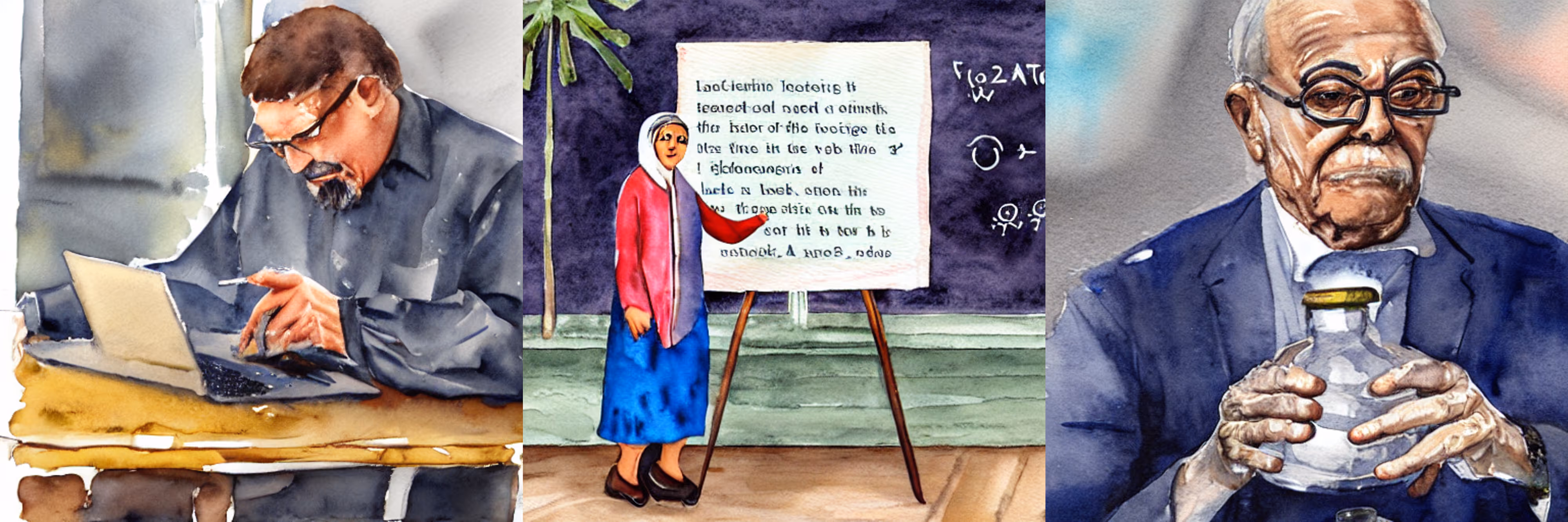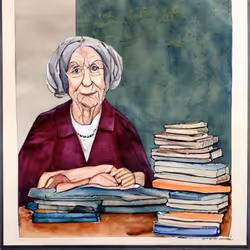 A Watercolor Painting of Old Female Teacher of Chemistry