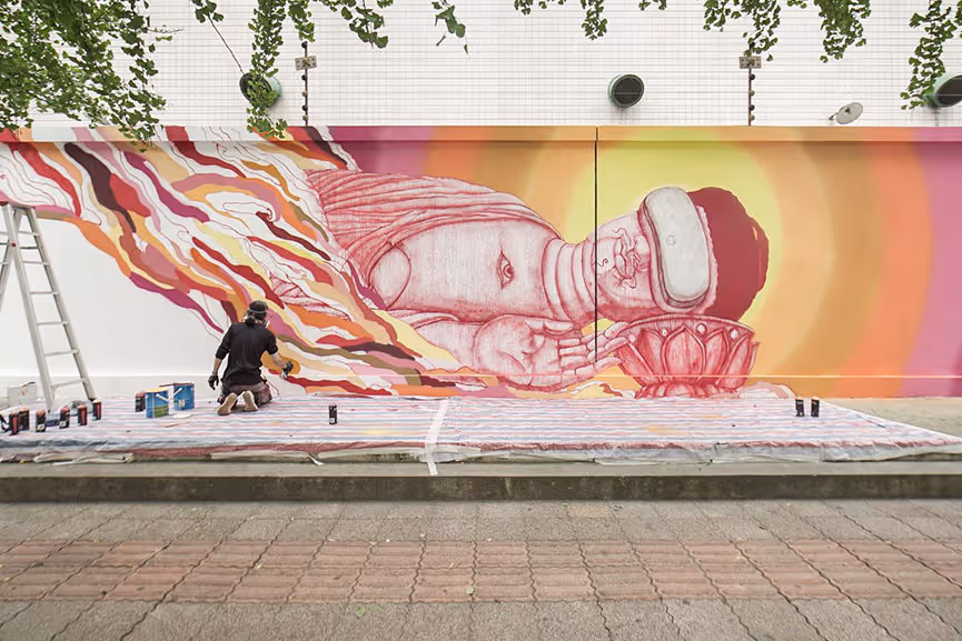 Known for blending elements of eastern religion, science, and pop-culture, Fansack is one of China’s most prolific and recognizable urban artists.