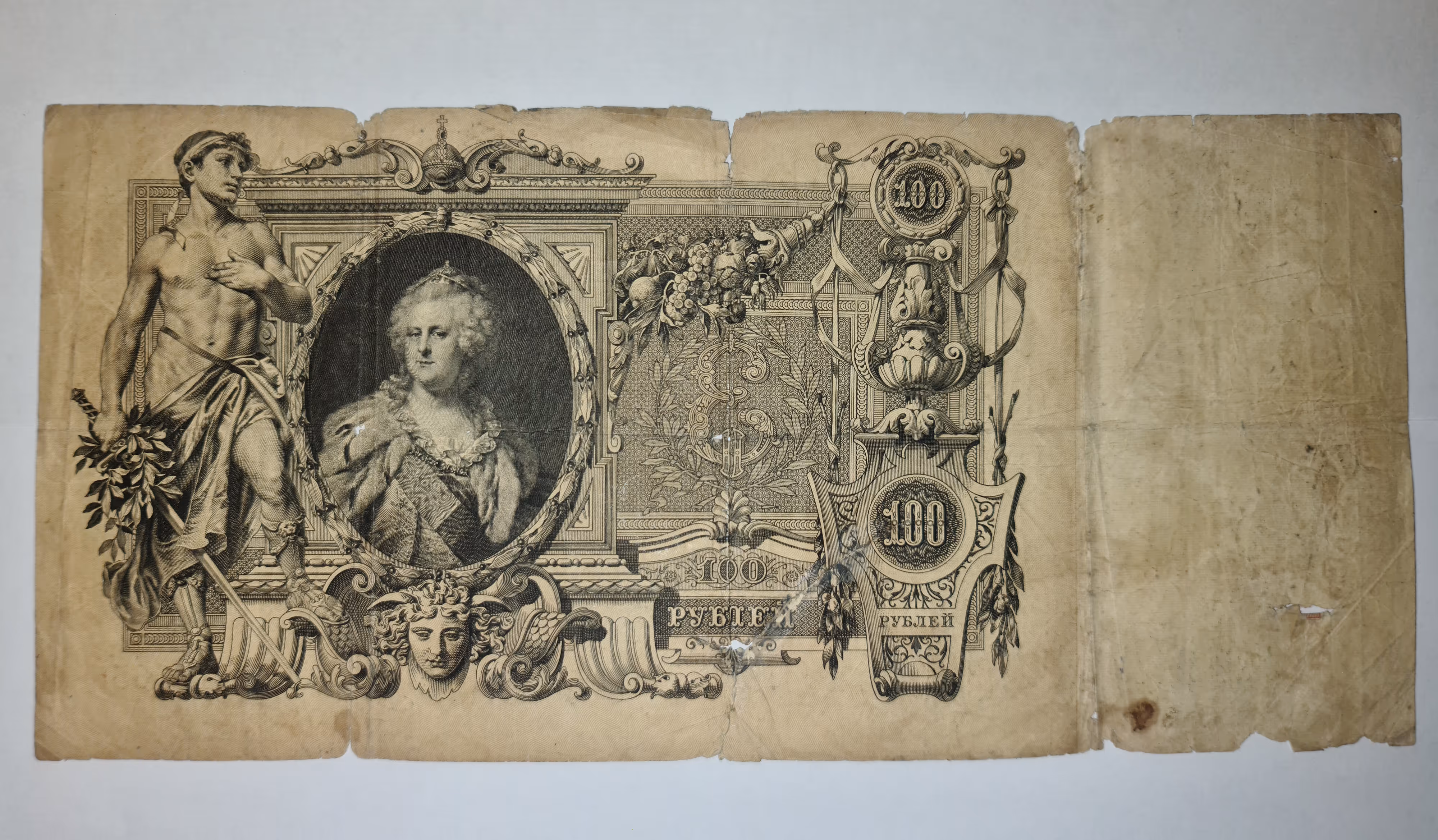 The 100-ruble "Tsarist banknote" of 1910 It was released during the reign of Catherine II.