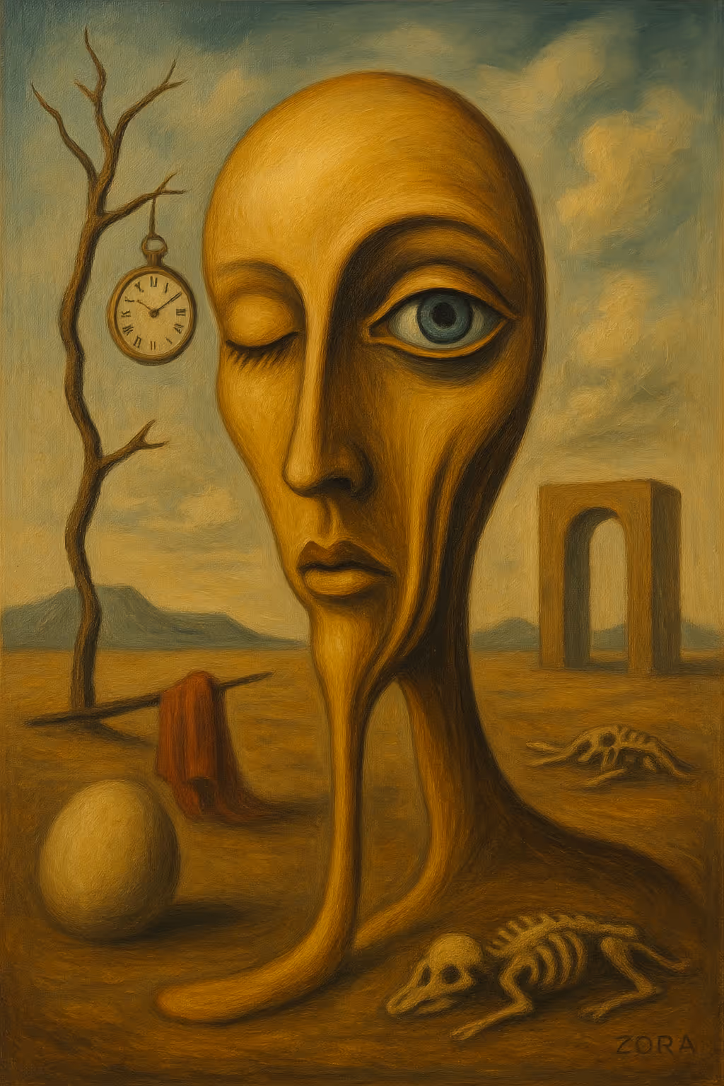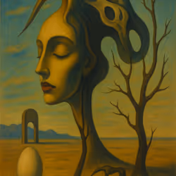 Each artwork is a surreal portal — a symbol, a whisper, a presence. These are not just images. They are keys to a deeper plane, where reality bends and meaning emerges through desert winds, silent clocks, and eyes that never close.