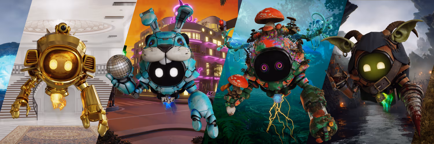 A collection of metaverse-ready 3D animated robots, powering communication and trade across the open metaverse