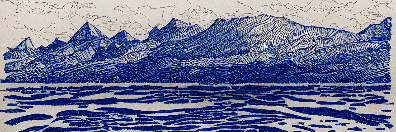 Creating Plotter Art style with AI. •Lines, Geometry, Nature• ⛰️🌊☁️💧🔵