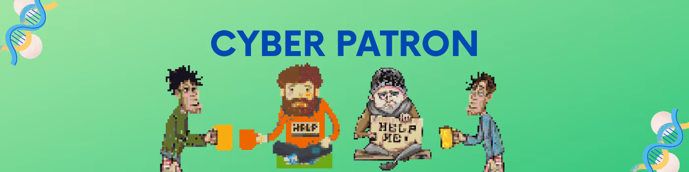 Cyber Patron is a collection of 100 NFT. It is created by a Helpless poor man (Visit Website). This NFT will affect you positively.