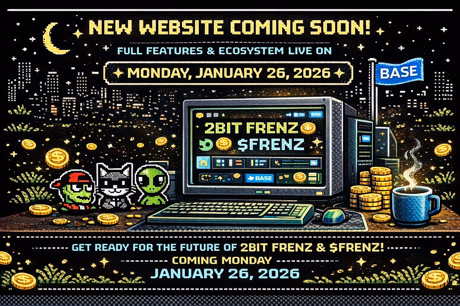 $FRENZ has a fixed total supply of 50,000 tokens and will be distributed exclusively as part of the utility program for the 2BIT FRENZ NFT collection on Base.