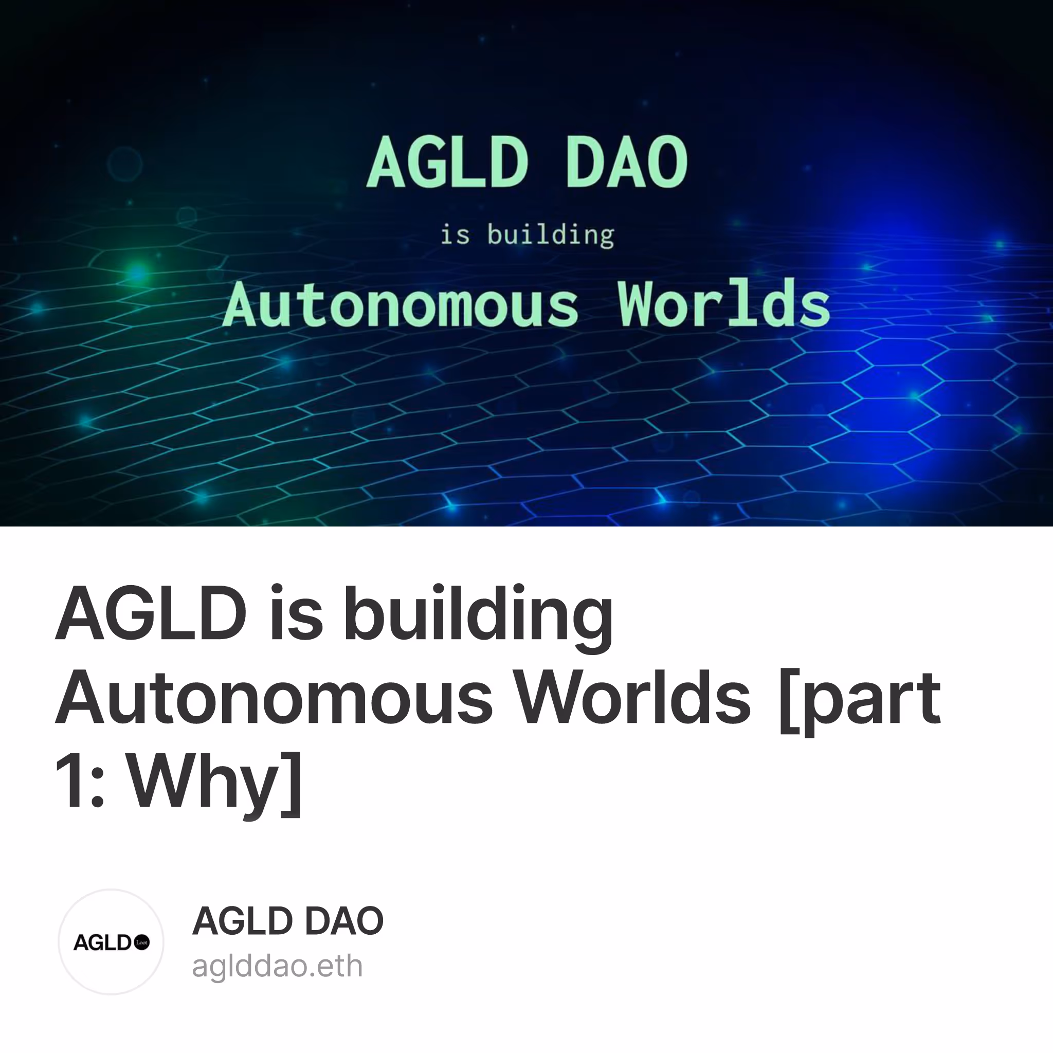 AGLD is building Autonomous Worlds [part 1: Why] 1