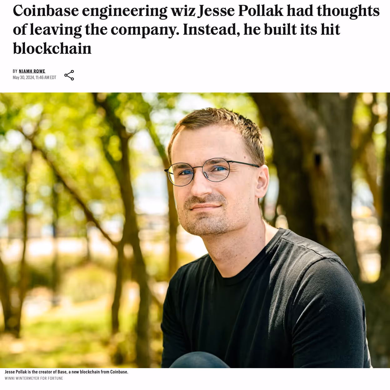 Coinbase Engineering wiz Jesse Pollak had thoughts of leaving the company. Instead, he built its hit blockchain
