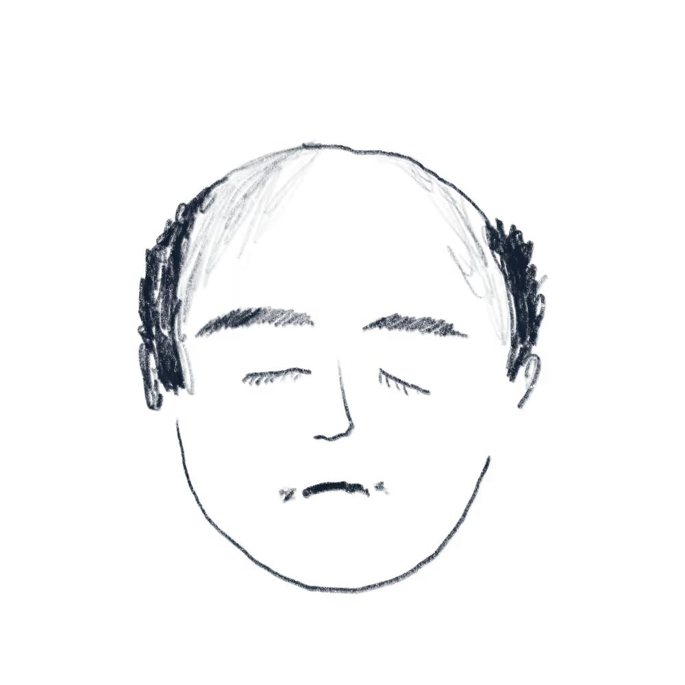 Ahh, yes, comtemplative ScribblePerson. Relaxin' be most arrivable with eyes that are "Restin'". Despite the "Meh" mouth, "Smooth Rider" brows bring upon this creation a peace that cannot be denied. Luck hath bestowed "The Smooth" chin upon this combi, a nice pairing with "The Kevin" hairdo and "Todd" nose. Scribbles be Praised.