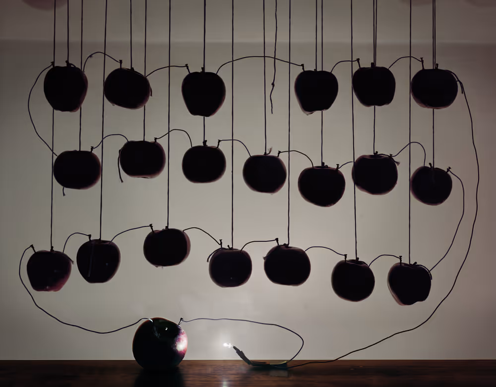 Back to Light - Battery with Hanging Apples, 2013