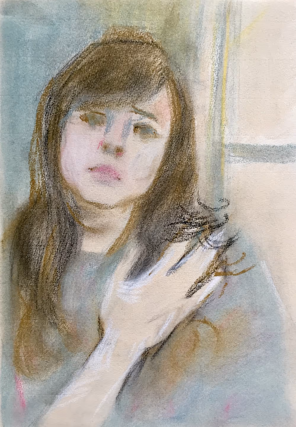 Self-portrait Renée Stotijn in grey-blue