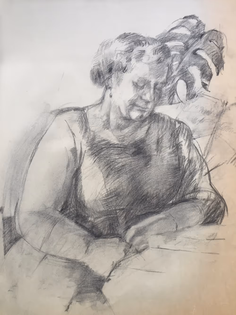 Seated lady next to a plant - portrait