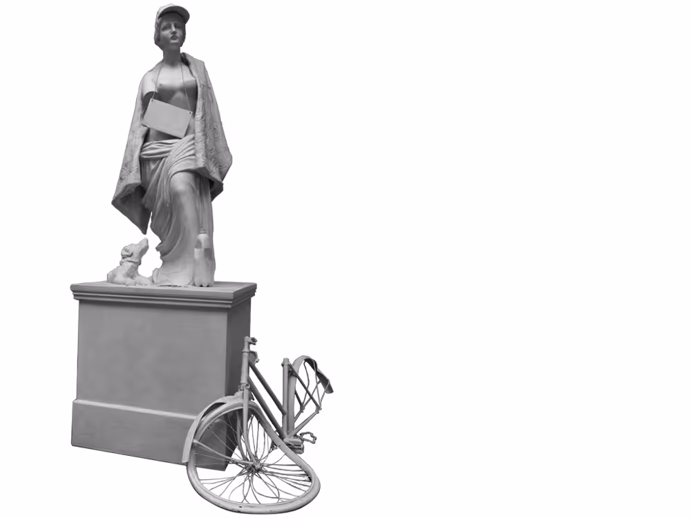 White Female Statue With Busted Bicycle - Banksy