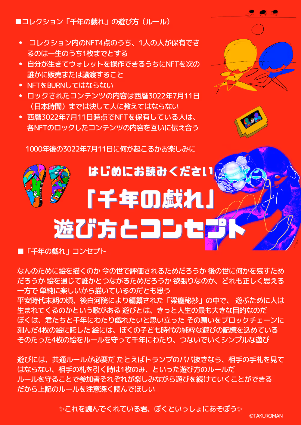 はじめにお読みください。コレクション「千年の戯れ」のルールとコンセプト(日本語)TAKUROMAN