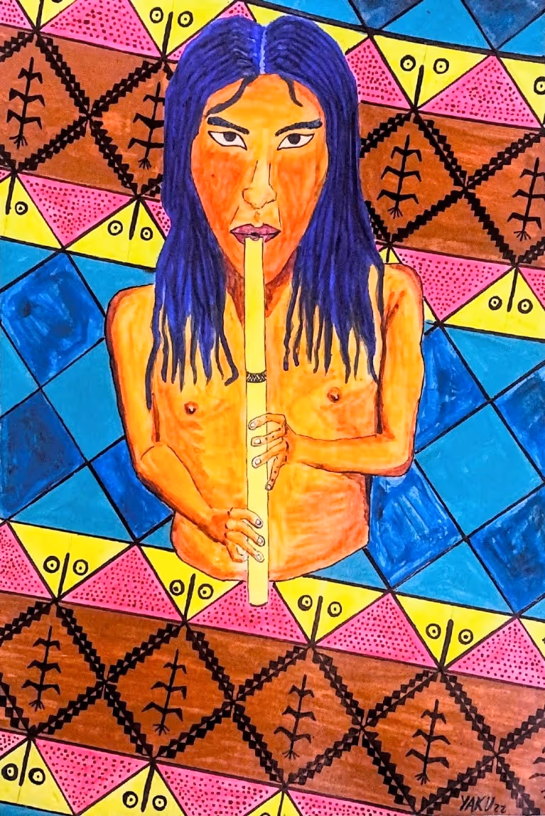Acrílico e aquarela sobre papel (Yaku Urku)