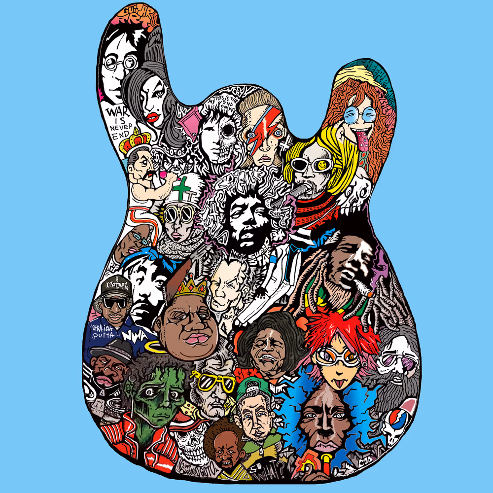 music superstar guitar shape poster 音楽家 寄せ絵