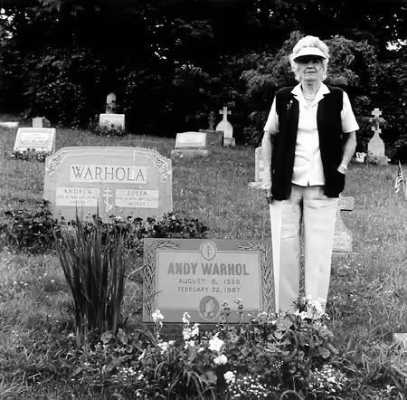 Sue Brown at Andy Warhol's Grave Bethal Park Pa 1/50