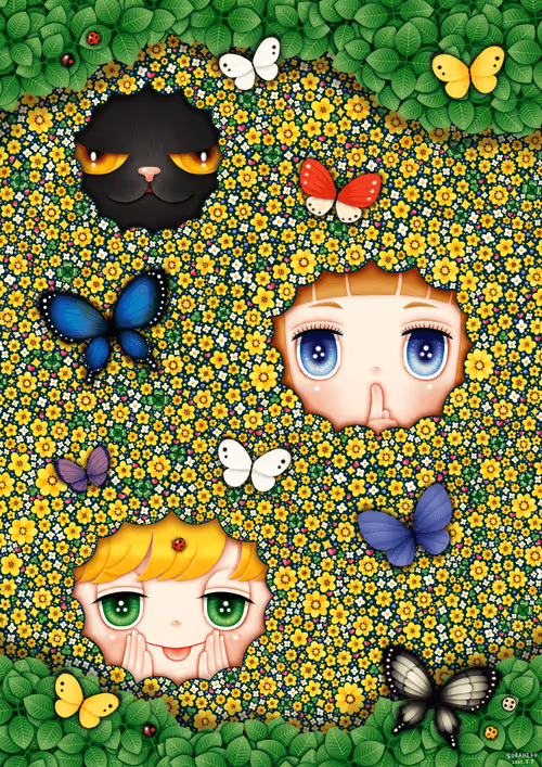 Flower field and children