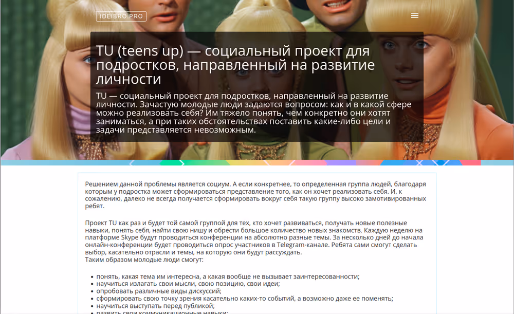 TU (teens up) — социальный проект для подростков, направленный на развитие личности