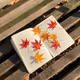 Fallen autumn leaves rest on pages quiet and still