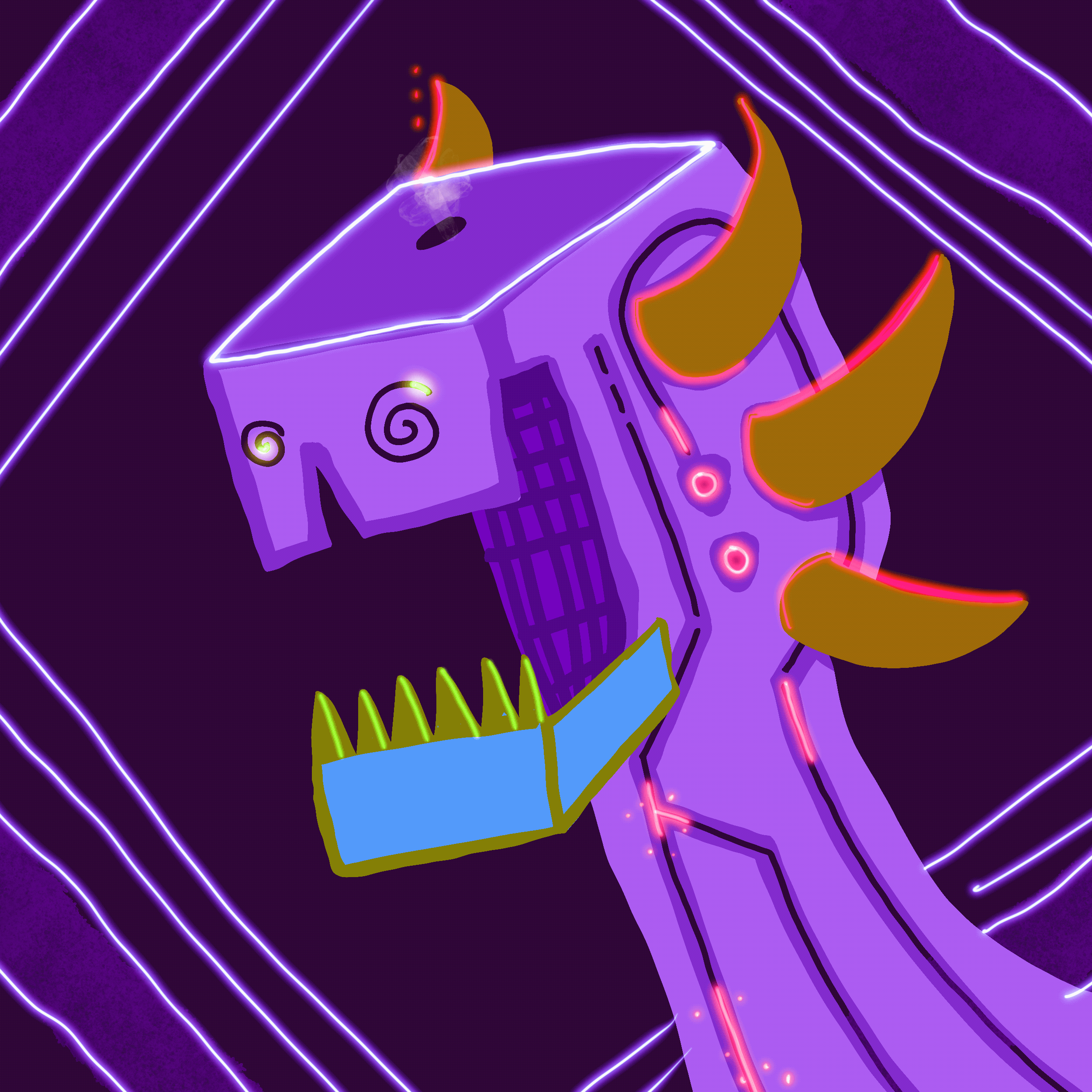 monster robot with color flame